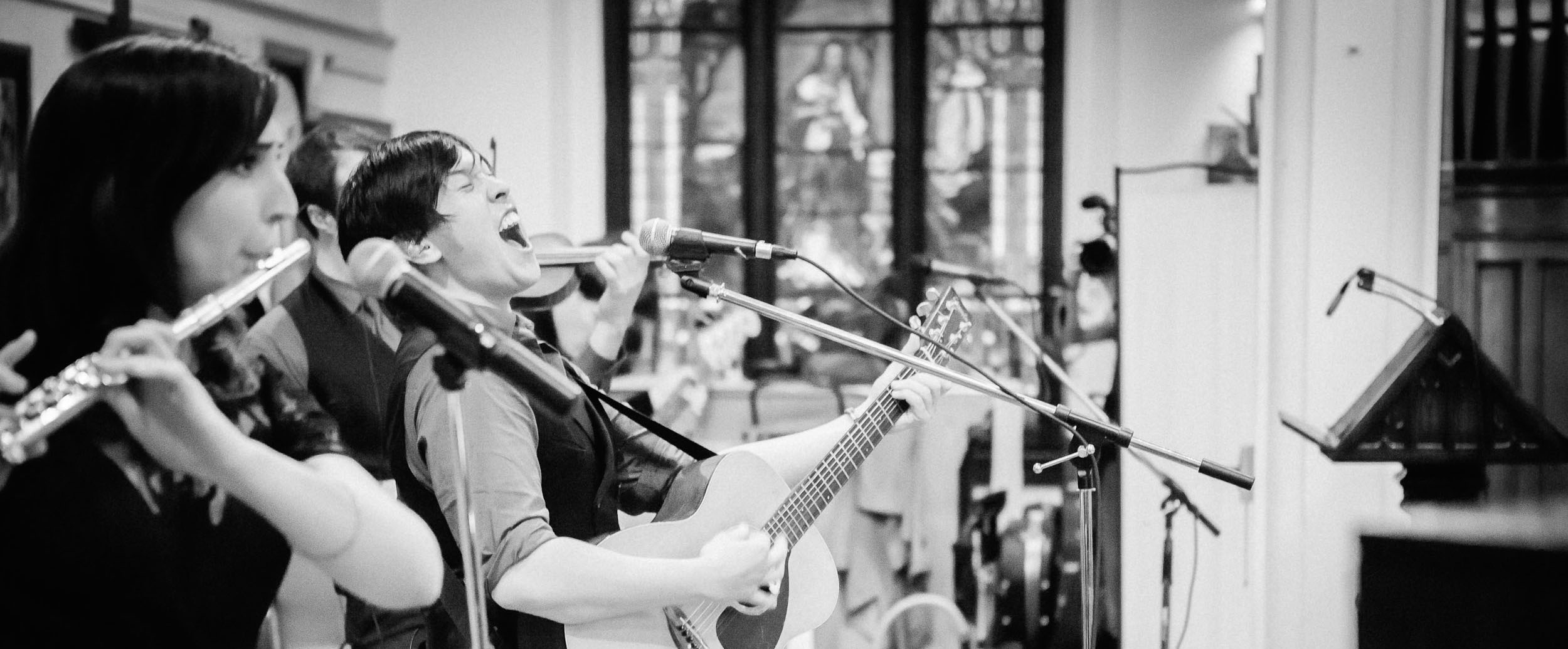 six-piece core band with over 250 “extended family members” with