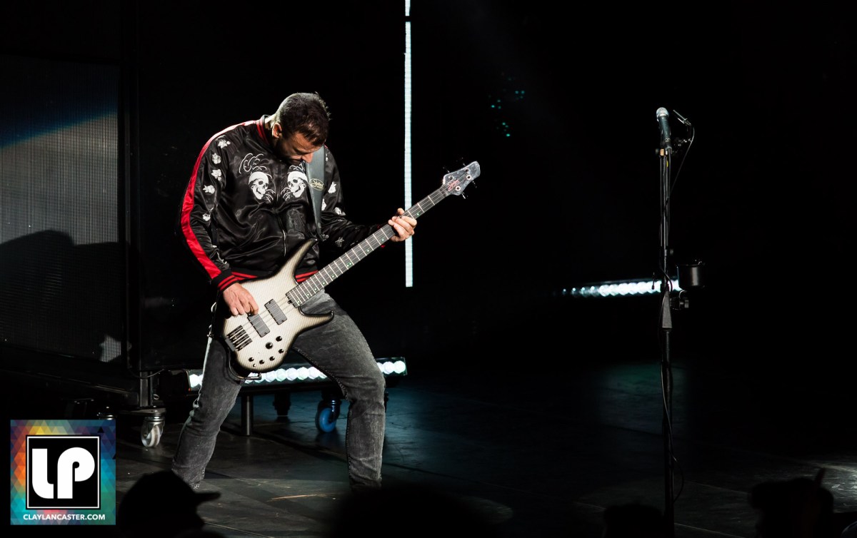 Chris Wolstenholme performs with Muse at Shoreline Amphitheater. Photo by Clay Lancaster.