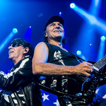 Klaus Meine and Matthias Jabs perform with Scorpions at Oracle Arena. Photo by Clay Lancaster.