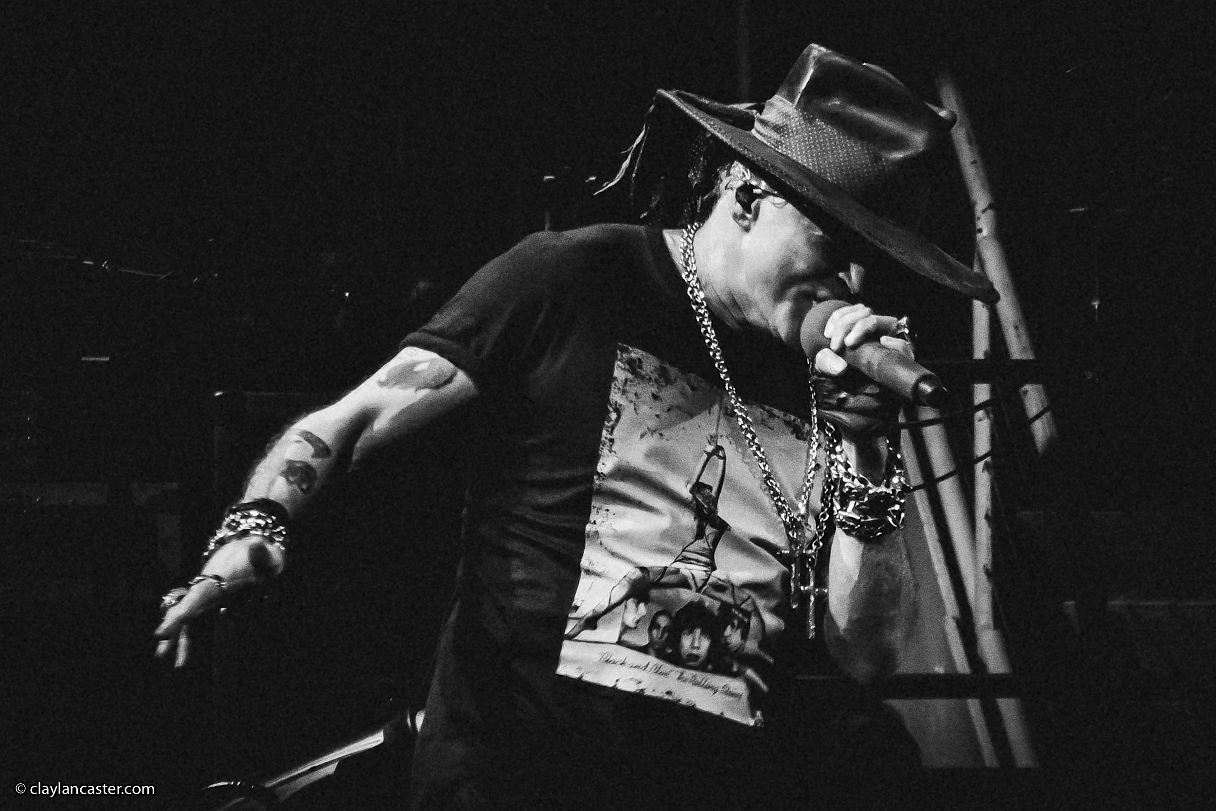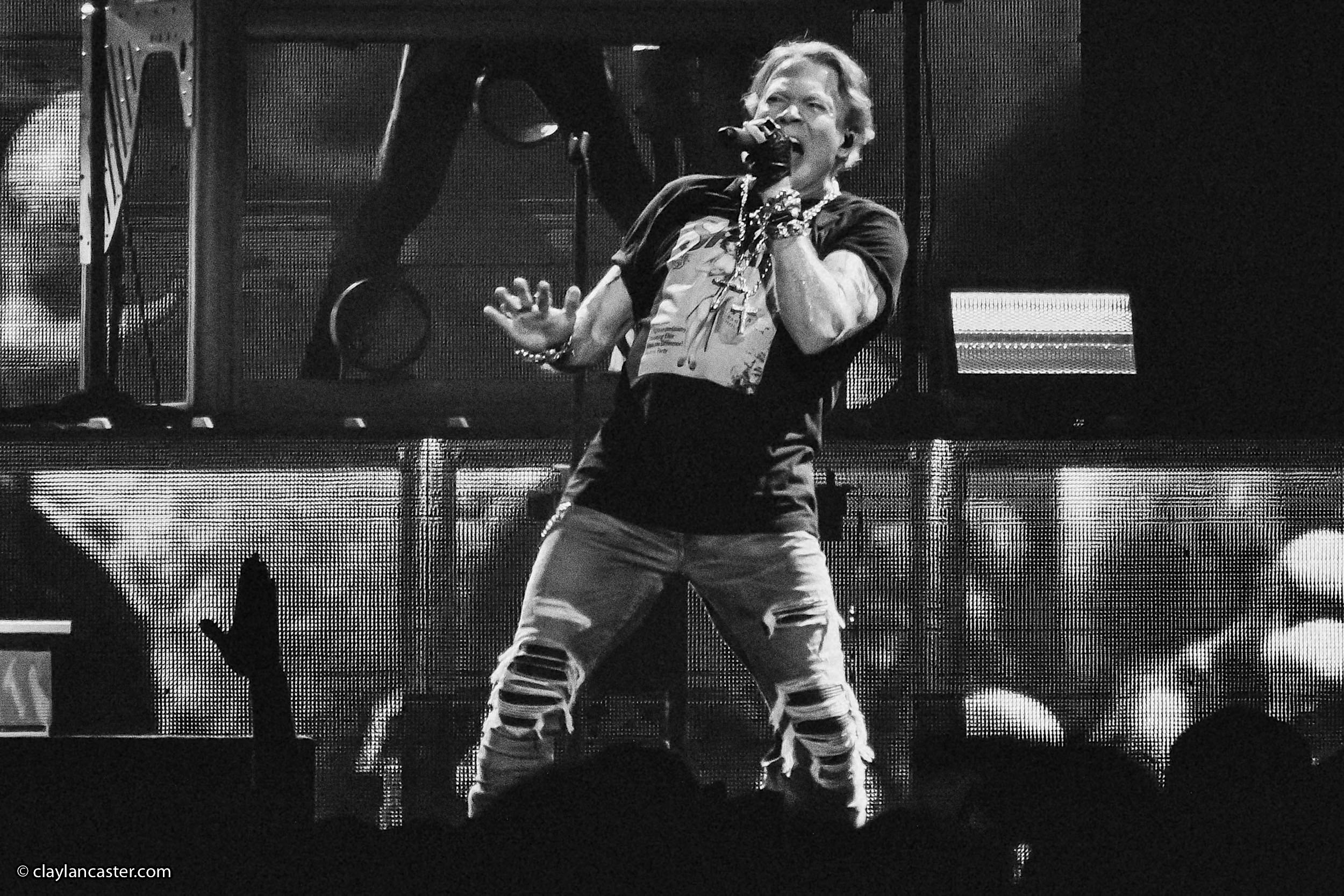 Playing 2.5 hours, the (mostly) reunited rock band (including Axl Rose, Slash, Duff McKagan and Dizzy reed) blasted through 24 songs (including tracks from Chinese Democracy and Velvet Revolver. Below are photos taken by Clay Lancaster (claylancaster.com).